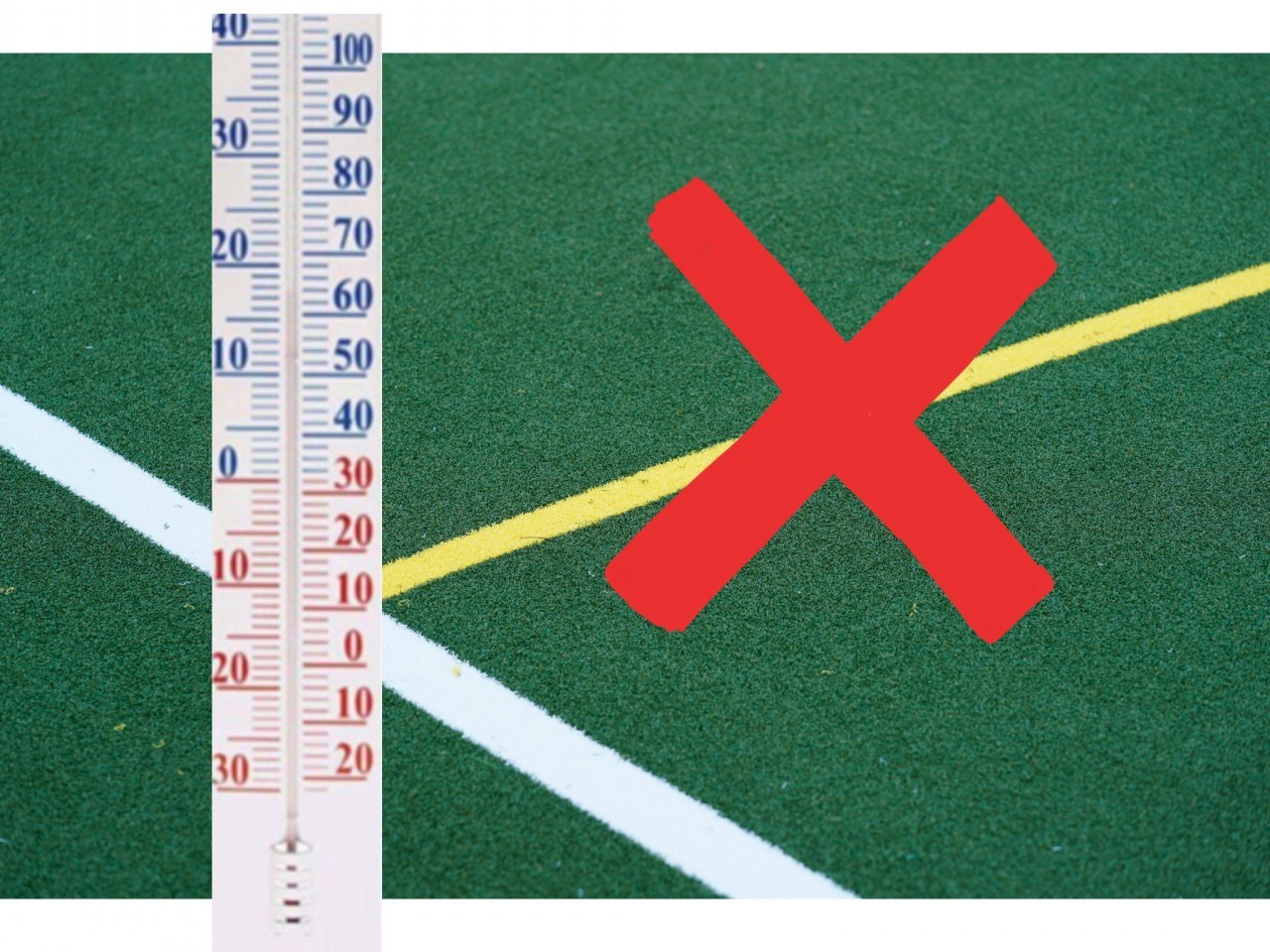 Door de lage tempatuur is het hockeyveld niet bespeelbaar; het is gevaarlijk voor de spelers en het veld wordt beschadigd indien jullie er wel gebruik van zouden maken. Dus ajb, betreed het veld NIET. Dankjewel!
